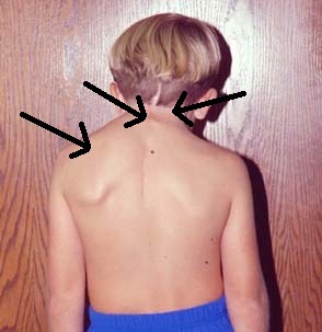 skrócenie szyi, przy licznych zrostach kręgów w odcinku szyjnym